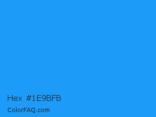 Hex #1e9bfb Color is a normal blue color and the nearest color is Dodger Blue #1e90ff. Hex code #1e9bfb and RGB value is rgb(30,155,251). In RGB color space, this color is composed of 12% red, 61% green, 98% blue, In CMYK color space, this color is composed of 88% cyan, 38% magenta, 0% yellow , 2% black , In HSL color space, this color has a hue angle of 206° , 97% saturation and 55% lightness.