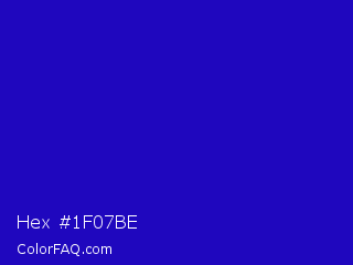 Hex #1f07be Color is a normal indigo color and the nearest color is Interdimensional Blue #360ccc. Hex code #1f07be and RGB value is rgb(31,7,190). In RGB color space, this color is composed of 12% red, 3% green, 75% blue, In CMYK color space, this color is composed of 84% cyan, 96% magenta, 0% yellow , 25% black , In HSL color space, this color has a hue angle of 248° , 93% saturation and 39% lightness.