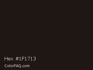 Hex #1f1713 Color is a very dark orange color and the nearest color is Eternity #211a0e. Hex code #1f1713 and RGB value is rgb(31,23,19). In RGB color space, this color is composed of 12% red, 9% green, 7% blue, In CMYK color space, this color is composed of 0% cyan, 26% magenta, 39% yellow , 88% black , In HSL color space, this color has a hue angle of 20° , 24% saturation and 10% lightness.