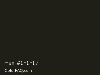Hex #1f1f17 Color is a very dark yellow color and the nearest color is Rangoon Green #1c1e13. Hex code #1f1f17 and RGB value is rgb(31,31,23). In RGB color space, this color is composed of 12% red, 12% green, 9% blue, In CMYK color space, this color is composed of 0% cyan, 0% magenta, 26% yellow , 88% black , In HSL color space, this color has a hue angle of 60° , 15% saturation and 11% lightness.