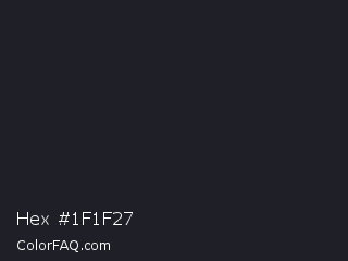 Hex #1f1f27 Color is a very dark blue color and the nearest color is Raisin Black #242124. Hex code #1f1f27 and RGB value is rgb(31,31,39). In RGB color space, this color is composed of 12% red, 12% green, 15% blue, In CMYK color space, this color is composed of 21% cyan, 21% magenta, 0% yellow , 85% black , In HSL color space, this color has a hue angle of 240° , 11% saturation and 14% lightness.