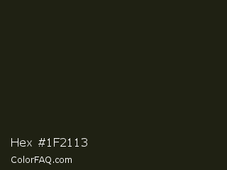 Hex #1f2113 Color is a very dark yellow color and the nearest color is Rangoon Green #1c1e13. Hex code #1f2113 and RGB value is rgb(31,33,19). In RGB color space, this color is composed of 12% red, 13% green, 7% blue, In CMYK color space, this color is composed of 6% cyan, 0% magenta, 42% yellow , 87% black , In HSL color space, this color has a hue angle of 69° , 27% saturation and 10% lightness.