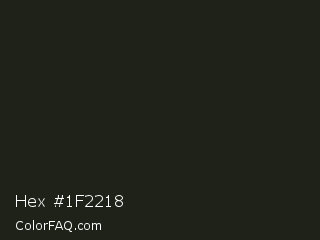Hex #1f2218 Color is a very dark lime color and the nearest color is Rangoon Green #1c1e13. Hex code #1f2218 and RGB value is rgb(31,34,24). In RGB color space, this color is composed of 12% red, 13% green, 9% blue, In CMYK color space, this color is composed of 9% cyan, 0% magenta, 29% yellow , 87% black , In HSL color space, this color has a hue angle of 78° , 17% saturation and 11% lightness.