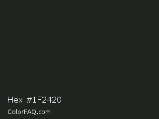 Hex #1f2420 Color is a very dark green color and the nearest color is Dark Jungle Green #1a2421. Hex code #1f2420 and RGB value is rgb(31,36,32). In RGB color space, this color is composed of 12% red, 14% green, 13% blue, In CMYK color space, this color is composed of 14% cyan, 0% magenta, 11% yellow , 86% black , In HSL color space, this color has a hue angle of 132° , 7% saturation and 13% lightness.