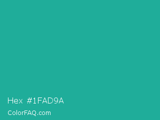 Hex #1fad9a Color is a normal cyan color and the nearest color is Light Sea Green #20b2aa. Hex code #1fad9a and RGB value is rgb(31,173,154). In RGB color space, this color is composed of 12% red, 68% green, 60% blue, In CMYK color space, this color is composed of 82% cyan, 0% magenta, 11% yellow , 32% black , In HSL color space, this color has a hue angle of 172° , 70% saturation and 40% lightness.