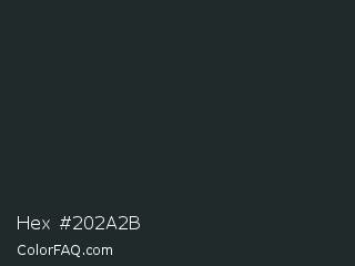 Hex #202a2b Color is a very dark cyan color and the nearest color is Charleston Green #232b2b. Hex code #202a2b and RGB value is rgb(32,42,43). In RGB color space, this color is composed of 13% red, 16% green, 17% blue, In CMYK color space, this color is composed of 26% cyan, 2% magenta, 0% yellow , 83% black , In HSL color space, this color has a hue angle of 185° , 15% saturation and 15% lightness.