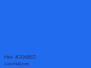 Hex #206bed Color is a normal blue color and the nearest color is Blue Crayola #1f75fe. Hex code #206bed and RGB value is rgb(32,107,237). In RGB color space, this color is composed of 13% red, 42% green, 93% blue, In CMYK color space, this color is composed of 86% cyan, 55% magenta, 0% yellow , 7% black , In HSL color space, this color has a hue angle of 218° , 85% saturation and 53% lightness.