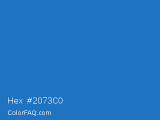 Hex #2073c0 Color is a normal blue color and the nearest color is Mariner #286acd. Hex code #2073c0 and RGB value is rgb(32,115,192). In RGB color space, this color is composed of 13% red, 45% green, 75% blue, In CMYK color space, this color is composed of 83% cyan, 40% magenta, 0% yellow , 25% black , In HSL color space, this color has a hue angle of 209° , 71% saturation and 44% lightness.
