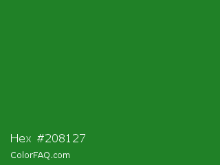 Hex #208127 Color is a normal green color and the nearest color is Forest Green #228b22. Hex code #208127 and RGB value is rgb(32,129,39). In RGB color space, this color is composed of 13% red, 51% green, 15% blue, In CMYK color space, this color is composed of 75% cyan, 0% magenta, 70% yellow , 49% black , In HSL color space, this color has a hue angle of 124° , 60% saturation and 32% lightness.