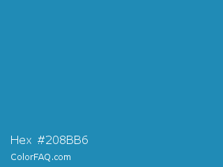 Hex #208bb6 Color is a normal blue color and the nearest color is Cyan Cornflower Blue #188bc2. Hex code #208bb6 and RGB value is rgb(32,139,182). In RGB color space, this color is composed of 13% red, 55% green, 71% blue, In CMYK color space, this color is composed of 82% cyan, 24% magenta, 0% yellow , 29% black , In HSL color space, this color has a hue angle of 197° , 70% saturation and 42% lightness.