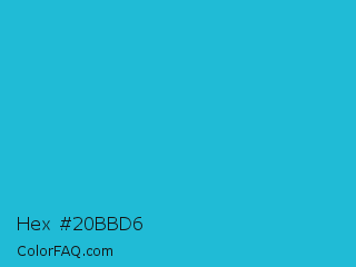 Hex #20bbd6 Color is a normal cyan color and the nearest color is Scooter #2ebfd4. Hex code #20bbd6 and RGB value is rgb(32,187,214). In RGB color space, this color is composed of 13% red, 73% green, 84% blue, In CMYK color space, this color is composed of 85% cyan, 13% magenta, 0% yellow , 16% black , In HSL color space, this color has a hue angle of 189° , 74% saturation and 48% lightness.
