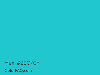 Hex #20c7cf Color is a normal cyan color and the nearest color is Java #1fc2c2. Hex code #20c7cf and RGB value is rgb(32,199,207). In RGB color space, this color is composed of 13% red, 78% green, 81% blue, In CMYK color space, this color is composed of 85% cyan, 4% magenta, 0% yellow , 19% black , In HSL color space, this color has a hue angle of 183° , 73% saturation and 47% lightness.