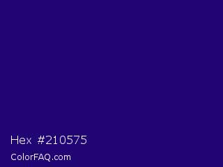 Hex #210575 Color is a dark indigo color and the nearest color is Deep Blue #220878. Hex code #210575 and RGB value is rgb(33,5,117). In RGB color space, this color is composed of 13% red, 2% green, 46% blue, In CMYK color space, this color is composed of 72% cyan, 96% magenta, 0% yellow , 54% black , In HSL color space, this color has a hue angle of 255° , 92% saturation and 24% lightness.