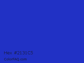 Hex #2131c5 Color is a normal blue color and the nearest color is Persian Blue #1c39bb. Hex code #2131c5 and RGB value is rgb(33,49,197). In RGB color space, this color is composed of 13% red, 19% green, 77% blue, In CMYK color space, this color is composed of 83% cyan, 75% magenta, 0% yellow , 23% black , In HSL color space, this color has a hue angle of 234° , 71% saturation and 45% lightness.