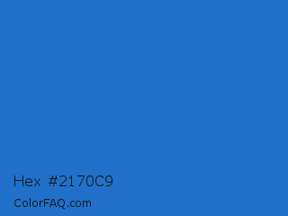 Hex #2170c9 Color is a normal blue color and the nearest color is Mariner #286acd. Hex code #2170c9 and RGB value is rgb(33,112,201). In RGB color space, this color is composed of 13% red, 44% green, 79% blue, In CMYK color space, this color is composed of 84% cyan, 44% magenta, 0% yellow , 21% black , In HSL color space, this color has a hue angle of 212° , 72% saturation and 46% lightness.