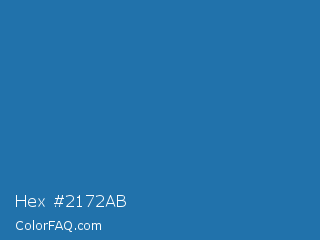 Hex #2172ab Color is a normal blue color and the nearest color is Matisse #1b659d. Hex code #2172ab and RGB value is rgb(33,114,171). In RGB color space, this color is composed of 13% red, 45% green, 67% blue, In CMYK color space, this color is composed of 81% cyan, 33% magenta, 0% yellow , 33% black , In HSL color space, this color has a hue angle of 205° , 68% saturation and 40% lightness.