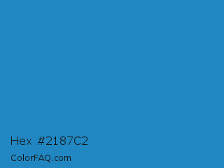 Hex #2187c2 Color is a normal blue color and the nearest color is Cyan Cornflower Blue #188bc2. Hex code #2187c2 and RGB value is rgb(33,135,194). In RGB color space, this color is composed of 13% red, 53% green, 76% blue, In CMYK color space, this color is composed of 83% cyan, 30% magenta, 0% yellow , 24% black , In HSL color space, this color has a hue angle of 202° , 71% saturation and 45% lightness.