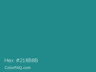 Hex #218b8b Color is a normal cyan color and the nearest color is Lochinvar #2c8c84. Hex code #218b8b and RGB value is rgb(33,139,139). In RGB color space, this color is composed of 13% red, 55% green, 55% blue, In CMYK color space, this color is composed of 76% cyan, 0% magenta, 0% yellow , 45% black , In HSL color space, this color has a hue angle of 180° , 62% saturation and 34% lightness.