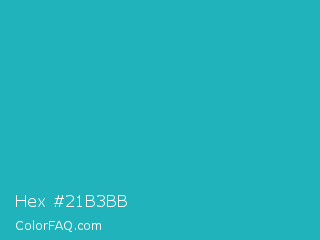 Hex #21b3bb Color is a normal cyan color and the nearest color is Java #1fc2c2. Hex code #21b3bb and RGB value is rgb(33,179,187). In RGB color space, this color is composed of 13% red, 70% green, 73% blue, In CMYK color space, this color is composed of 82% cyan, 4% magenta, 0% yellow , 27% black , In HSL color space, this color has a hue angle of 183° , 70% saturation and 43% lightness.