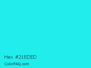 Hex #21eded Color is a normal cyan color and the nearest color is Loeen #15f2fd. Hex code #21eded and RGB value is rgb(33,237,237). In RGB color space, this color is composed of 13% red, 93% green, 93% blue, In CMYK color space, this color is composed of 86% cyan, 0% magenta, 0% yellow , 7% black , In HSL color space, this color has a hue angle of 180° , 85% saturation and 53% lightness.
