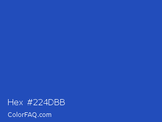 Hex #224dbb Color is a normal blue color and the nearest color is Cerulean Blue #2a52be. Hex code #224dbb and RGB value is rgb(34,77,187). In RGB color space, this color is composed of 13% red, 30% green, 73% blue, In CMYK color space, this color is composed of 82% cyan, 59% magenta, 0% yellow , 27% black , In HSL color space, this color has a hue angle of 223° , 69% saturation and 43% lightness.