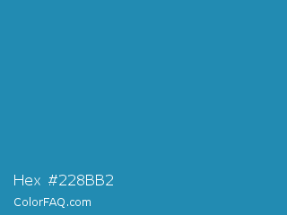Hex #228bb2 Color is a normal blue color and the nearest color is Eastern Blue #1e9ab0. Hex code #228bb2 and RGB value is rgb(34,139,178). In RGB color space, this color is composed of 13% red, 55% green, 70% blue, In CMYK color space, this color is composed of 81% cyan, 22% magenta, 0% yellow , 30% black , In HSL color space, this color has a hue angle of 196° , 68% saturation and 42% lightness.