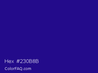 Hex #230b8b Color is a dark indigo color and the nearest color is Blue Gem #2c0e8c. Hex code #230b8b and RGB value is rgb(35,11,139). In RGB color space, this color is composed of 14% red, 4% green, 55% blue, In CMYK color space, this color is composed of 75% cyan, 92% magenta, 0% yellow , 45% black , In HSL color space, this color has a hue angle of 251° , 85% saturation and 29% lightness.