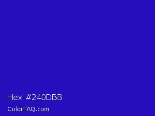 Hex #240dbb Color is a normal indigo color and the nearest color is Interdimensional Blue #360ccc. Hex code #240dbb and RGB value is rgb(36,13,187). In RGB color space, this color is composed of 14% red, 5% green, 73% blue, In CMYK color space, this color is composed of 81% cyan, 93% magenta, 0% yellow , 27% black , In HSL color space, this color has a hue angle of 248° , 87% saturation and 39% lightness.