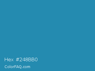 Hex #248bb0 Color is a normal blue color and the nearest color is Eastern Blue #1e9ab0. Hex code #248bb0 and RGB value is rgb(36,139,176). In RGB color space, this color is composed of 14% red, 55% green, 69% blue, In CMYK color space, this color is composed of 80% cyan, 21% magenta, 0% yellow , 31% black , In HSL color space, this color has a hue angle of 196° , 66% saturation and 42% lightness.