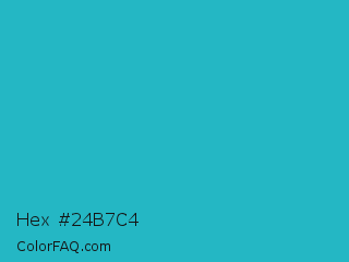 Hex #24b7c4 Color is a normal cyan color and the nearest color is Java #1fc2c2. Hex code #24b7c4 and RGB value is rgb(36,183,196). In RGB color space, this color is composed of 14% red, 72% green, 77% blue, In CMYK color space, this color is composed of 82% cyan, 7% magenta, 0% yellow , 23% black , In HSL color space, this color has a hue angle of 185° , 69% saturation and 45% lightness.