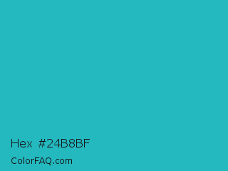 Hex #24b8bf Color is a normal cyan color and the nearest color is Java #1fc2c2. Hex code #24b8bf and RGB value is rgb(36,184,191). In RGB color space, this color is composed of 14% red, 72% green, 75% blue, In CMYK color space, this color is composed of 81% cyan, 4% magenta, 0% yellow , 25% black , In HSL color space, this color has a hue angle of 183° , 68% saturation and 45% lightness.