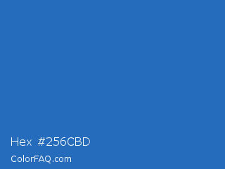 Hex #256cbd Color is a normal blue color and the nearest color is Mariner #286acd. Hex code #256cbd and RGB value is rgb(37,108,189). In RGB color space, this color is composed of 15% red, 42% green, 74% blue, In CMYK color space, this color is composed of 80% cyan, 43% magenta, 0% yellow , 26% black , In HSL color space, this color has a hue angle of 212° , 67% saturation and 44% lightness.
