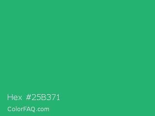 Hex #25b371 Color is a normal green color and the nearest color is Green Crayola #1cac78. Hex code #25b371 and RGB value is rgb(37,179,113). In RGB color space, this color is composed of 15% red, 70% green, 44% blue, In CMYK color space, this color is composed of 79% cyan, 0% magenta, 37% yellow , 30% black , In HSL color space, this color has a hue angle of 152° , 66% saturation and 42% lightness.