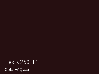 Hex #260f11 Color is a very dark red color and the nearest color is Gondola #261414. Hex code #260f11 and RGB value is rgb(38,15,17). In RGB color space, this color is composed of 15% red, 6% green, 7% blue, In CMYK color space, this color is composed of 0% cyan, 61% magenta, 55% yellow , 85% black , In HSL color space, this color has a hue angle of 355° , 43% saturation and 10% lightness.