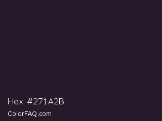 Hex #271a2b Color is a very dark purple color and the nearest color is Bastille #292130. Hex code #271a2b and RGB value is rgb(39,26,43). In RGB color space, this color is composed of 15% red, 10% green, 17% blue, In CMYK color space, this color is composed of 9% cyan, 40% magenta, 0% yellow , 83% black , In HSL color space, this color has a hue angle of 286° , 25% saturation and 14% lightness.