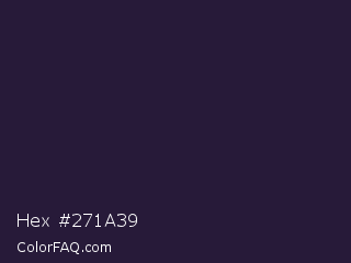 Hex #271a39 Color is a very dark violet color and the nearest color is Revolver #2c1632. Hex code #271a39 and RGB value is rgb(39,26,57). In RGB color space, this color is composed of 15% red, 10% green, 22% blue, In CMYK color space, this color is composed of 32% cyan, 54% magenta, 0% yellow , 78% black , In HSL color space, this color has a hue angle of 265° , 37% saturation and 16% lightness.
