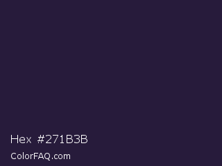 Hex #271b3b Color is a very dark violet color and the nearest color is Steel Gray #262335. Hex code #271b3b and RGB value is rgb(39,27,59). In RGB color space, this color is composed of 15% red, 11% green, 23% blue, In CMYK color space, this color is composed of 34% cyan, 54% magenta, 0% yellow , 77% black , In HSL color space, this color has a hue angle of 263° , 37% saturation and 17% lightness.
