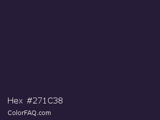 Hex #271c38 Color is a very dark violet color and the nearest color is Steel Gray #262335. Hex code #271c38 and RGB value is rgb(39,28,56). In RGB color space, this color is composed of 15% red, 11% green, 22% blue, In CMYK color space, this color is composed of 30% cyan, 50% magenta, 0% yellow , 78% black , In HSL color space, this color has a hue angle of 264° , 33% saturation and 16% lightness.