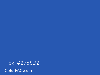 Hex #2758b2 Color is a normal blue color and the nearest color is Cerulean Blue #2a52be. Hex code #2758b2 and RGB value is rgb(39,88,178). In RGB color space, this color is composed of 15% red, 35% green, 70% blue, In CMYK color space, this color is composed of 78% cyan, 51% magenta, 0% yellow , 30% black , In HSL color space, this color has a hue angle of 219° , 64% saturation and 43% lightness.
