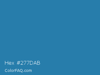Hex #277dab Color is a normal blue color and the nearest color is Astral #327da0. Hex code #277dab and RGB value is rgb(39,125,171). In RGB color space, this color is composed of 15% red, 49% green, 67% blue, In CMYK color space, this color is composed of 77% cyan, 27% magenta, 0% yellow , 33% black , In HSL color space, this color has a hue angle of 201° , 63% saturation and 41% lightness.