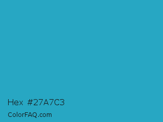 Hex #27a7c3 Color is a normal cyan color and the nearest color is Ball Blue #21abcd. Hex code #27a7c3 and RGB value is rgb(39,167,195). In RGB color space, this color is composed of 15% red, 65% green, 76% blue, In CMYK color space, this color is composed of 80% cyan, 14% magenta, 0% yellow , 24% black , In HSL color space, this color has a hue angle of 191° , 67% saturation and 46% lightness.