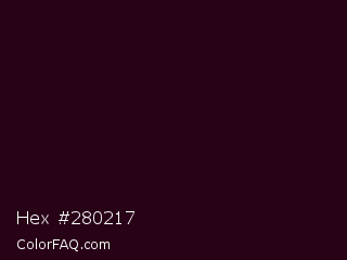 Hex #280217 Color is a almost black magenta color and the nearest color is Gondola #261414. Hex code #280217 and RGB value is rgb(40,2,23). In RGB color space, this color is composed of 16% red, 1% green, 9% blue, In CMYK color space, this color is composed of 0% cyan, 95% magenta, 43% yellow , 84% black , In HSL color space, this color has a hue angle of 327° , 90% saturation and 8% lightness.