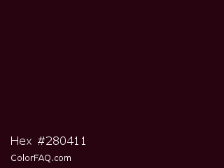 Hex #280411 Color is a almost black rose color and the nearest color is Sepia Black #2b0202. Hex code #280411 and RGB value is rgb(40,4,17). In RGB color space, this color is composed of 16% red, 2% green, 7% blue, In CMYK color space, this color is composed of 0% cyan, 90% magenta, 58% yellow , 84% black , In HSL color space, this color has a hue angle of 338° , 82% saturation and 9% lightness.