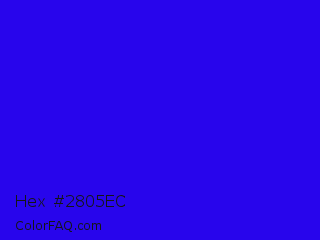 Hex #2805ec Color is a normal indigo color and the nearest color is Bluebonnet #1c1cf0. Hex code #2805ec and RGB value is rgb(40,5,236). In RGB color space, this color is composed of 16% red, 2% green, 93% blue, In CMYK color space, this color is composed of 83% cyan, 98% magenta, 0% yellow , 7% black , In HSL color space, this color has a hue angle of 249° , 96% saturation and 47% lightness.