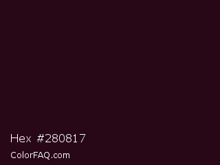 Hex #280817 Color is a almost black rose color and the nearest color is Gondola #261414. Hex code #280817 and RGB value is rgb(40,8,23). In RGB color space, this color is composed of 16% red, 3% green, 9% blue, In CMYK color space, this color is composed of 0% cyan, 80% magenta, 43% yellow , 84% black , In HSL color space, this color has a hue angle of 332° , 67% saturation and 9% lightness.