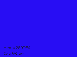 Hex #280df4 Color is a normal indigo color and the nearest color is Bluebonnet #1c1cf0. Hex code #280df4 and RGB value is rgb(40,13,244). In RGB color space, this color is composed of 16% red, 5% green, 96% blue, In CMYK color space, this color is composed of 84% cyan, 95% magenta, 0% yellow , 4% black , In HSL color space, this color has a hue angle of 247° , 91% saturation and 50% lightness.