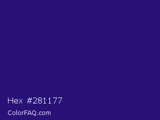 Hex #281177 Color is a dark indigo color and the nearest color is Persian Indigo #32127a. Hex code #281177 and RGB value is rgb(40,17,119). In RGB color space, this color is composed of 16% red, 7% green, 47% blue, In CMYK color space, this color is composed of 66% cyan, 86% magenta, 0% yellow , 53% black , In HSL color space, this color has a hue angle of 254° , 75% saturation and 27% lightness.