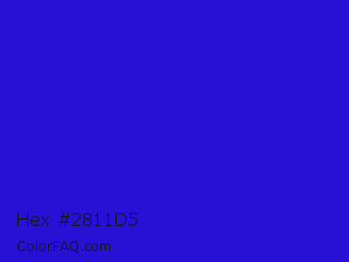 Hex #2811d5 Color is a normal indigo color and the nearest color is Interdimensional Blue #360ccc. Hex code #2811d5 and RGB value is rgb(40,17,213). In RGB color space, this color is composed of 16% red, 7% green, 84% blue, In CMYK color space, this color is composed of 81% cyan, 92% magenta, 0% yellow , 16% black , In HSL color space, this color has a hue angle of 247° , 85% saturation and 45% lightness.
