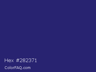Hex #282371 Color is a dark indigo color and the nearest color is St Patricks Blue #23297a. Hex code #282371 and RGB value is rgb(40,35,113). In RGB color space, this color is composed of 16% red, 14% green, 44% blue, In CMYK color space, this color is composed of 65% cyan, 69% magenta, 0% yellow , 56% black , In HSL color space, this color has a hue angle of 244° , 53% saturation and 29% lightness.