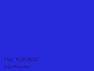 Hex #2828dd Color is a normal blue color and the nearest color is Palatinate Blue #273be2. Hex code #2828dd and RGB value is rgb(40,40,221). In RGB color space, this color is composed of 16% red, 16% green, 87% blue, In CMYK color space, this color is composed of 82% cyan, 82% magenta, 0% yellow , 13% black , In HSL color space, this color has a hue angle of 240° , 73% saturation and 51% lightness.